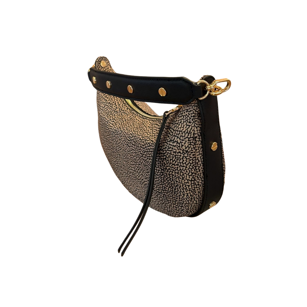 - Materiale: mini bag realizzata in tessuto ecosostenibile stampa op con dettagli in pregiata pelle.