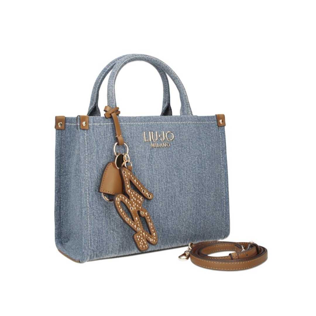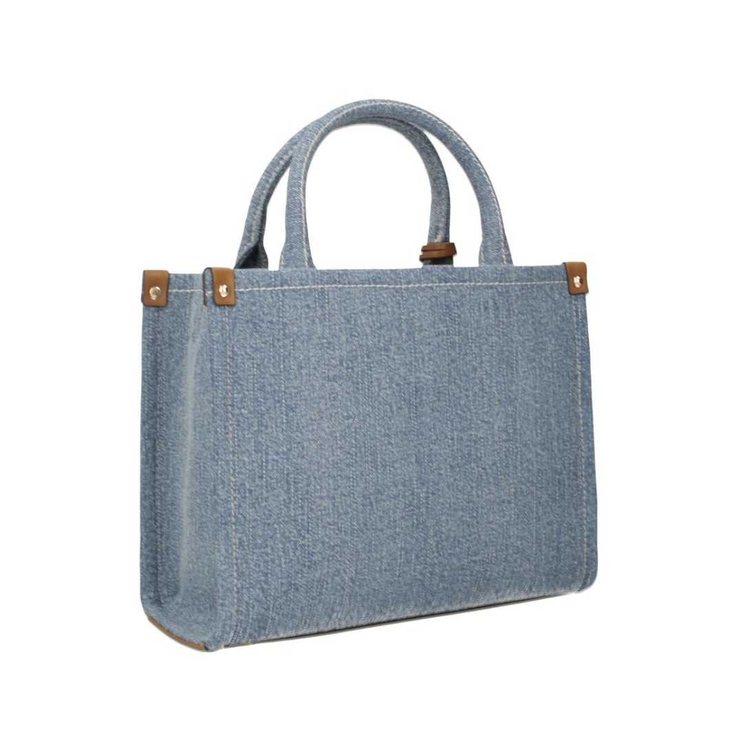 - Materiale: borsa realizzata realizzata interamente in cotone al 100% effetto denim, garantendo leggerezza e resistenza per l’utilizzo quotidiano.